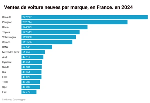 À l’inverse, des marques comme Dacia, Toyota ou Hyundai, toutes bien positionnées dans le classement des ventes, n’apparaissent pas du tout dans la liste des marques les plus souvent réparées, ce qui pourrait traduire une meilleure fiabilité.